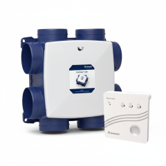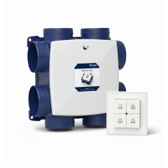 The Renson Healthbox 3.0 (Kit 14429) is the intelligent, demand-controlled Type C mechanical ventilation system, optimized for healthy air in the home. This specific kit is equipped with a smart CO2 control module that automatically adjusts the ventilation based on air quality. The system provides mechanical extraction of polluted air from wet rooms and creates a natural air supply via window grilles. By only ventilating when the CO2 concentration becomes too high, you achieve significant energy savings compared to traditional systems. The Healthbox 3.0 is the quiet, powerful heart of your ventilation and guarantees a comfortable and healthy indoor climate tailored to your living pattern.